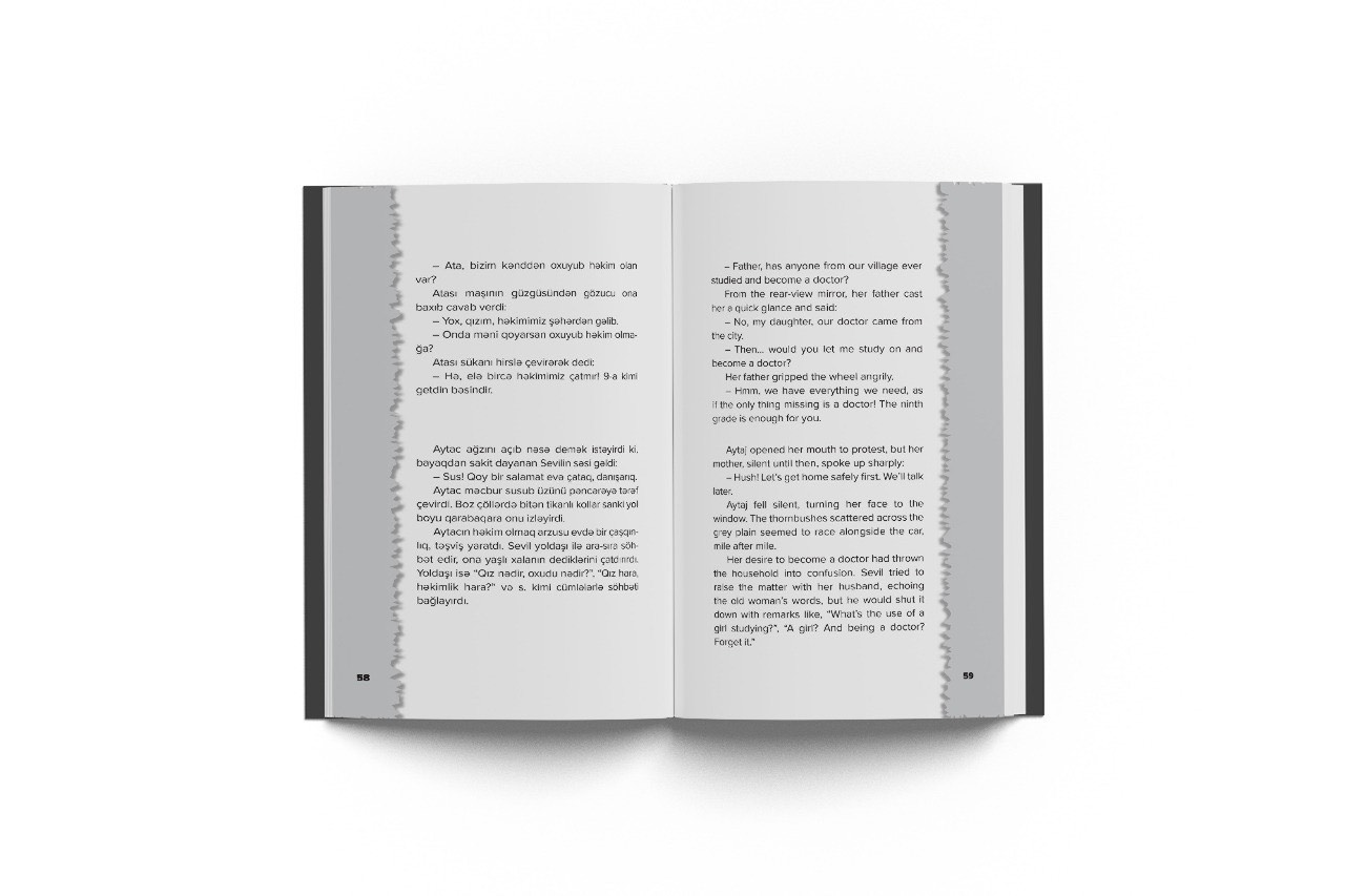 Onun ətrafı isə sevgi, qayğı və sevdiklərinin dəstəyi ilə əhatə olunmuşdu. Ailəsi onun səsini dinlədi, qanadlarını sındırmadı. O da öz arzularını gerçəkləşdirdi. Bu kitab onların hər ikisinin səsini daşıyır. Bir tərəfdə