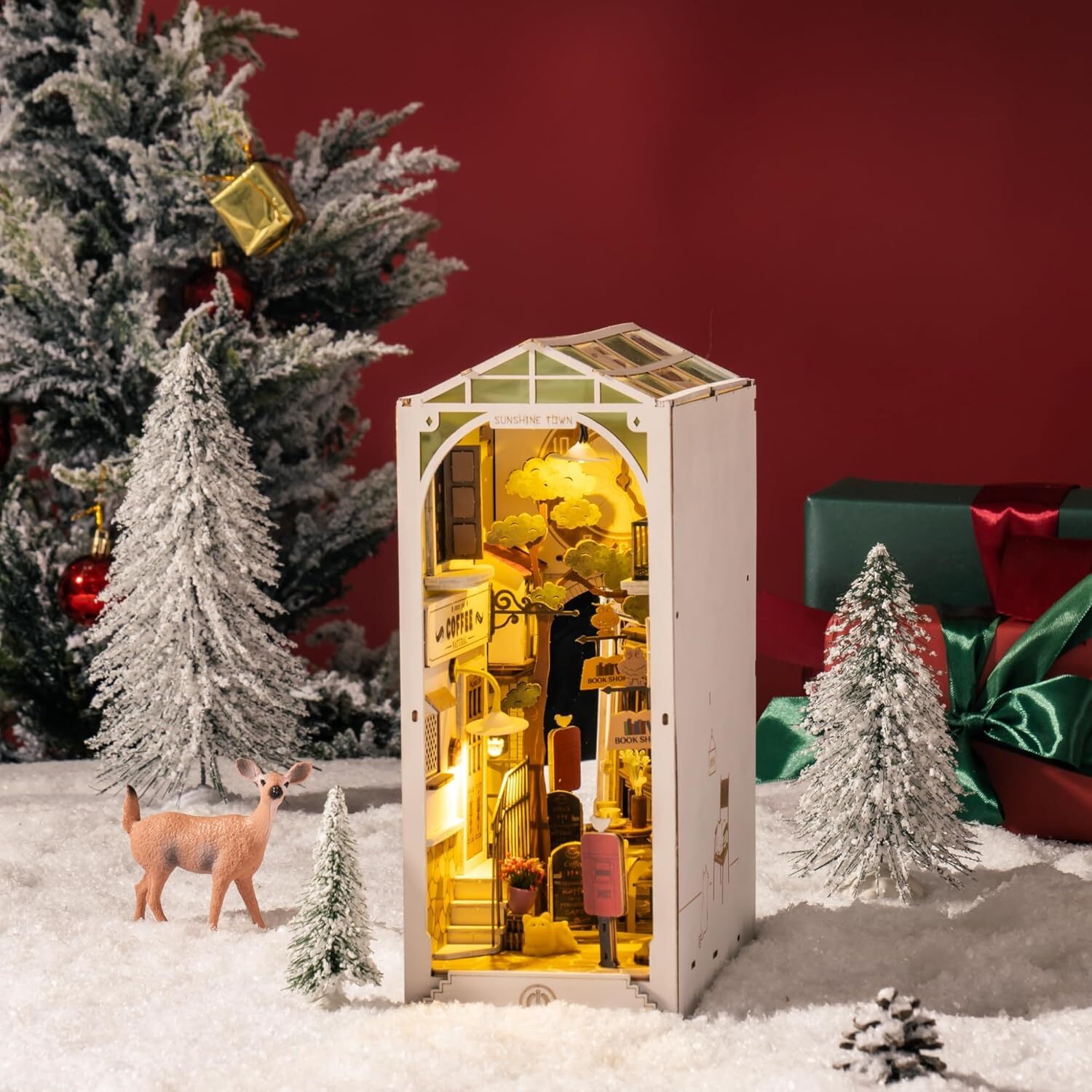 ПРОДУМАННЫЕ ДЕТАЛИ: Все наши изделия отличаются особым вниманием к деталям. Декоративный книжный шкаф «Солнечный город» с первого взгляда открывает невообразимый и креативный пейзаж. Он дополнен прозрачной крышей, большими часами со стрелками, тенистым деревом, столами и стульями, а также декорацией для кафе. Кроме того, шкаф оснащен подвижными фигурками животных: двумя котами и птицами. Создайте свой собственный микромир!