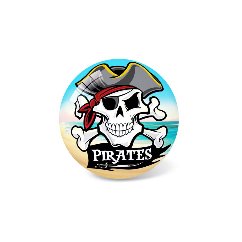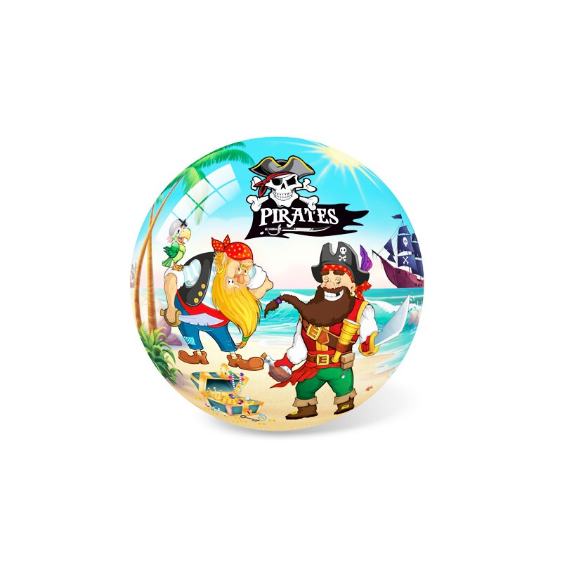Красочный мяч диаметром 14 см, подходит для игр на улице. Надувается через клапан с помощью иглы. Изображение пиратов.
