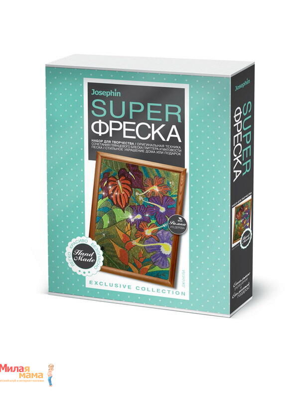 С набором для создания фрески Фантазер "Superфреска: Джунгли" вы сможете изготовить удивительную картину из цветного песка! В набор входят: трехслойная основа с вырезанным трафаретом, набор цветного песка и глиттера, деревянная рамка, картонная подложка, шаблон, гвозди, петля, инструкция на русском языке. Вы и ваш ребенок без труда создадите необычную "песчаную картину" с блестками, которая будет отличным украшением комнаты или кабинета и объектом гордости. Процесс создания картины из блесток и цветного песка прост и увлекателен - достаточно отклеить защитный слой с каждого элемента и засыпать его блестками или песком разных цветов с помощью кисточки, ориентируясь на изображение на обратной стороне упаковки. Переходите от мелких элементов к более крупным. А с помощью салфетки вы сможете стряхнуть лишние блест...