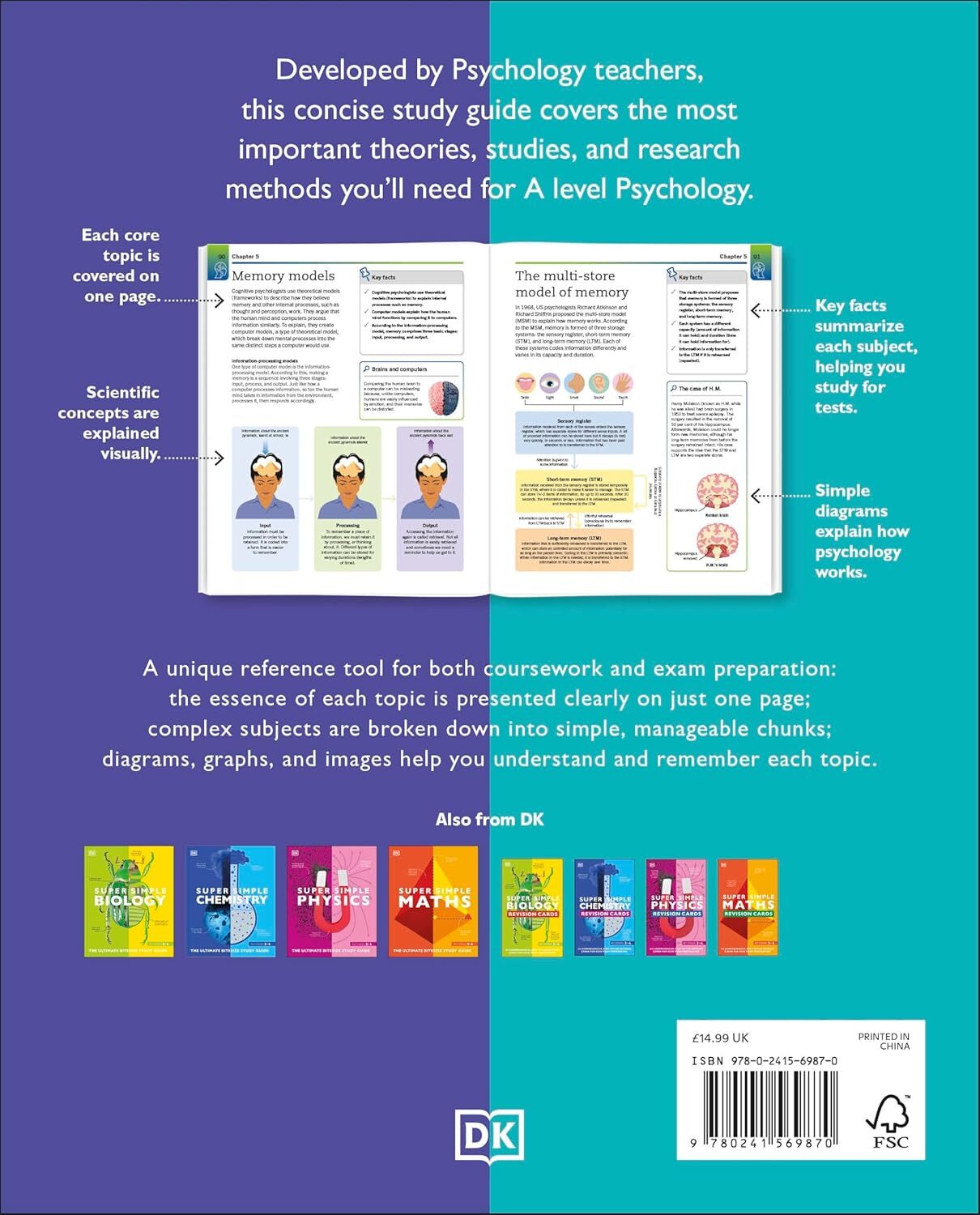 Super Simple Psychology contains all the essential topics for A Level Psychology in one handy study guide. Each page covers one topic and is designed and illustrated to make the facts easy to understand and remember and to bring the subject to life. Information panels explain and analyse key theories and studies with the help of simple graphics and a useful "Key facts" box on every page provides a summary to help with revision.