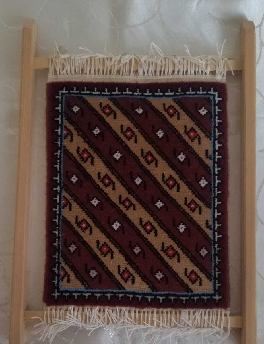 Təbii yun saplardan toxunmuş əl işi suvenir xalça