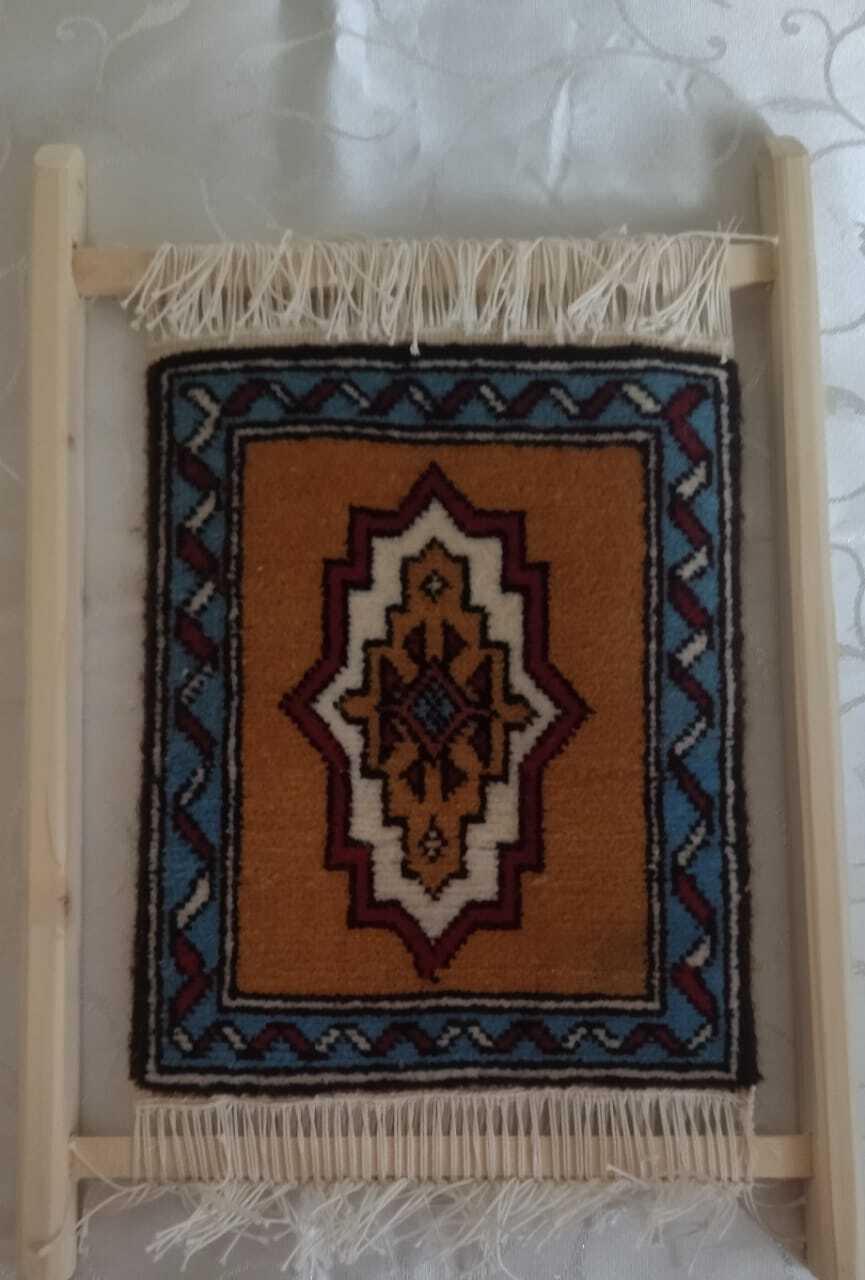 Təbii yun saplardan toxunmuş əl işi suvenir xalça