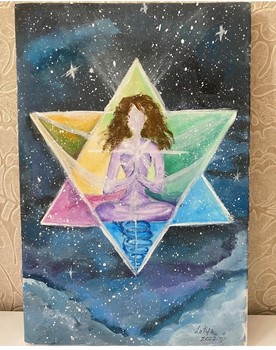 “İşığın içində mən” tablosu, kətan üzərində yağlı boya ilə çəkilib. Ölçüsü 30x20 sm