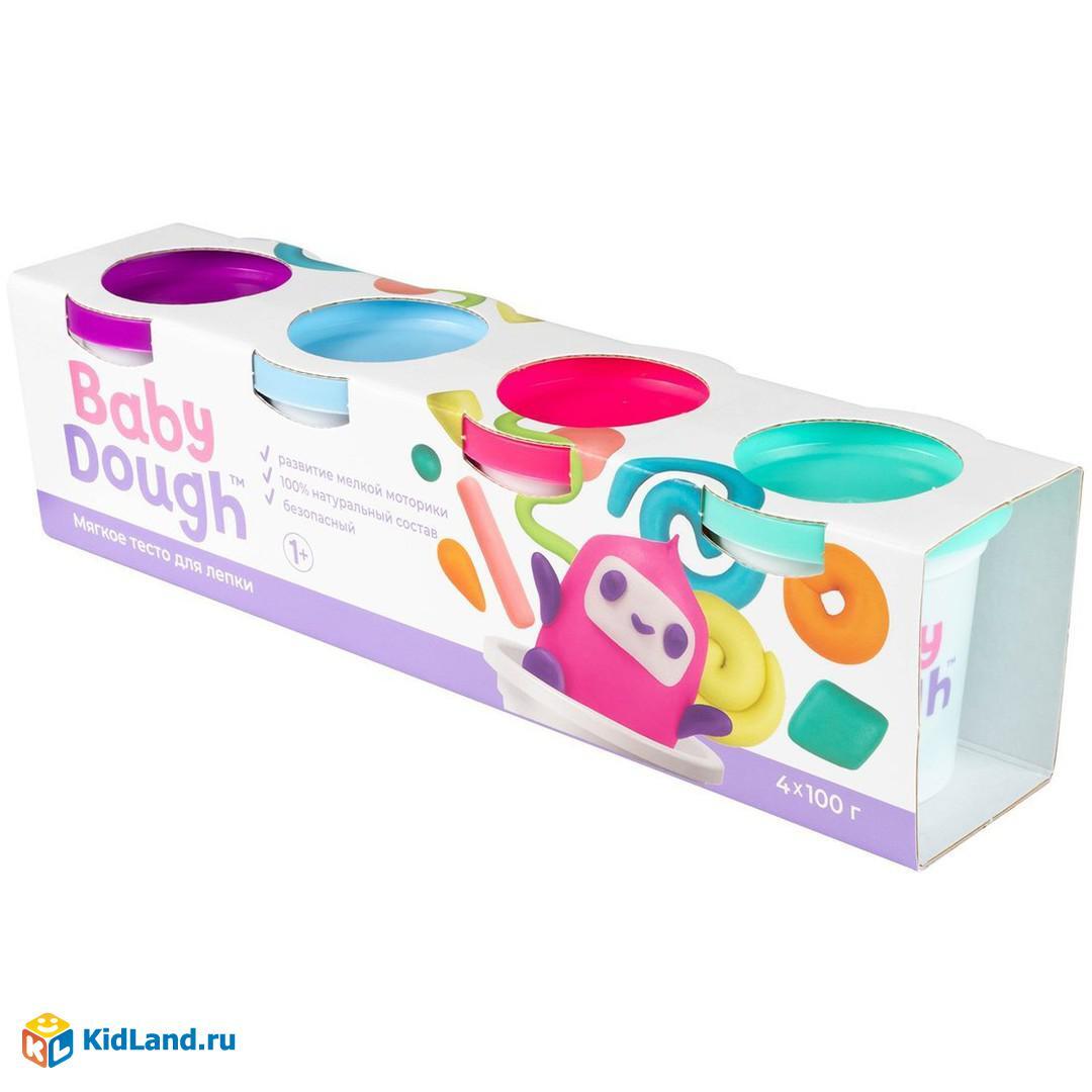 Baby Dough - мягкое тесто для малышей 1+. В наоре 4 цвета мягкого теста для лепки: фиолетовый, мятный, розовый, нежно-голубой. Экологичный бренд, в котором натуральный состав (пищевые красители), высокое качество теста для лепки. Можно использовать дополнительные цвета из наборов Baby dough для создания ярких и смелых шедевров