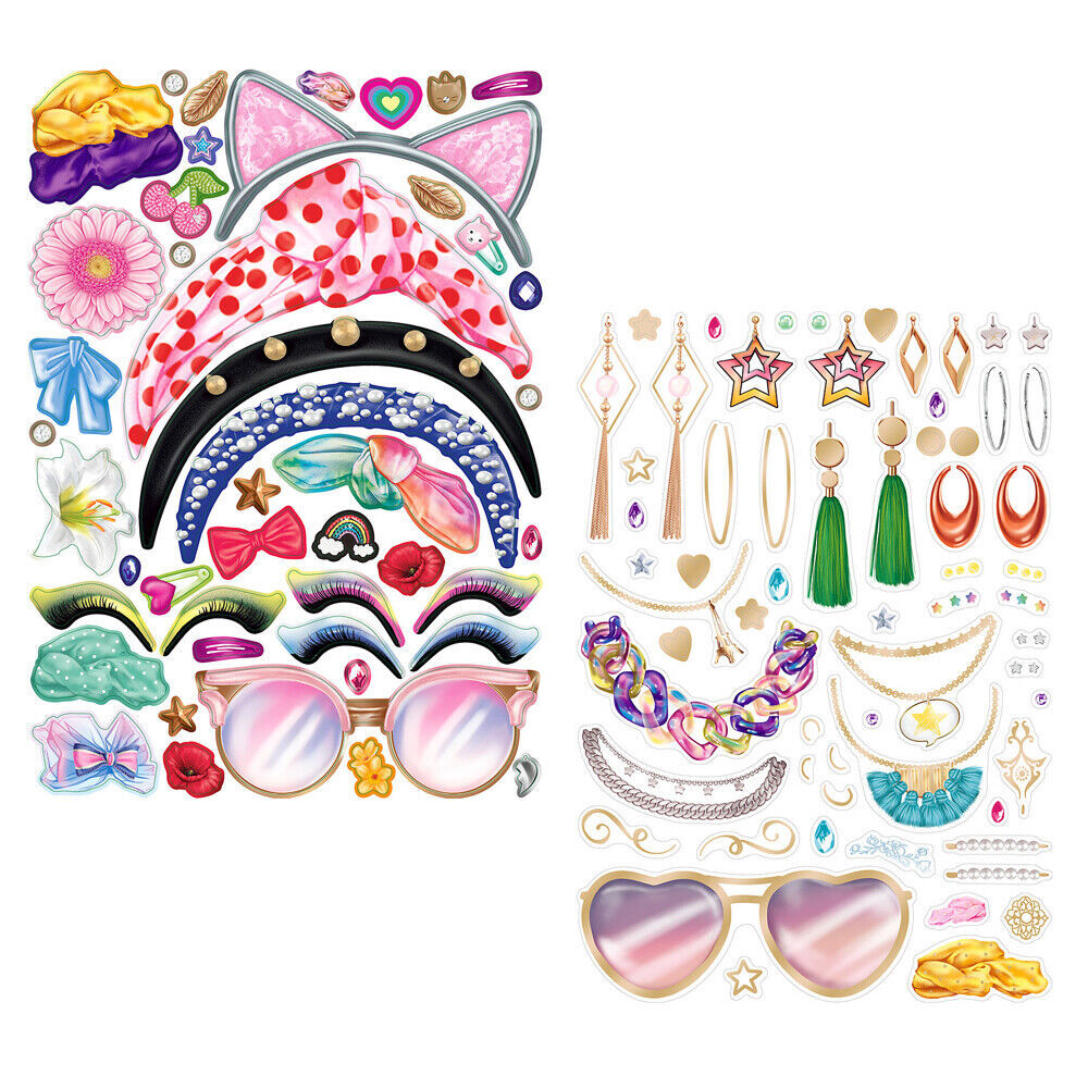 Альбом для раскрашивания Макияж содержит 60 страниц для творчества, 1 страницу с наклейками из фольги и 1 страницу с бумажными наклейками.