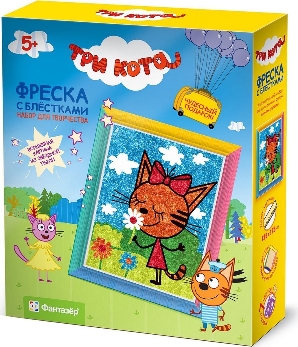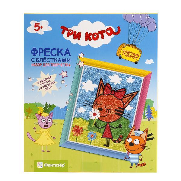 Набор для создания фрески Фантазер "Три кота Карамелька" - фреска представляет собой увлекательный набор для детского творчества, благодаря которому можно создать картинку, выполненную из песка. Для этого в набор входят все необходимые предметы, а благодаря рамке, также входящей в комплект, готовой картиной можно украсить интерьер детской комнаты.