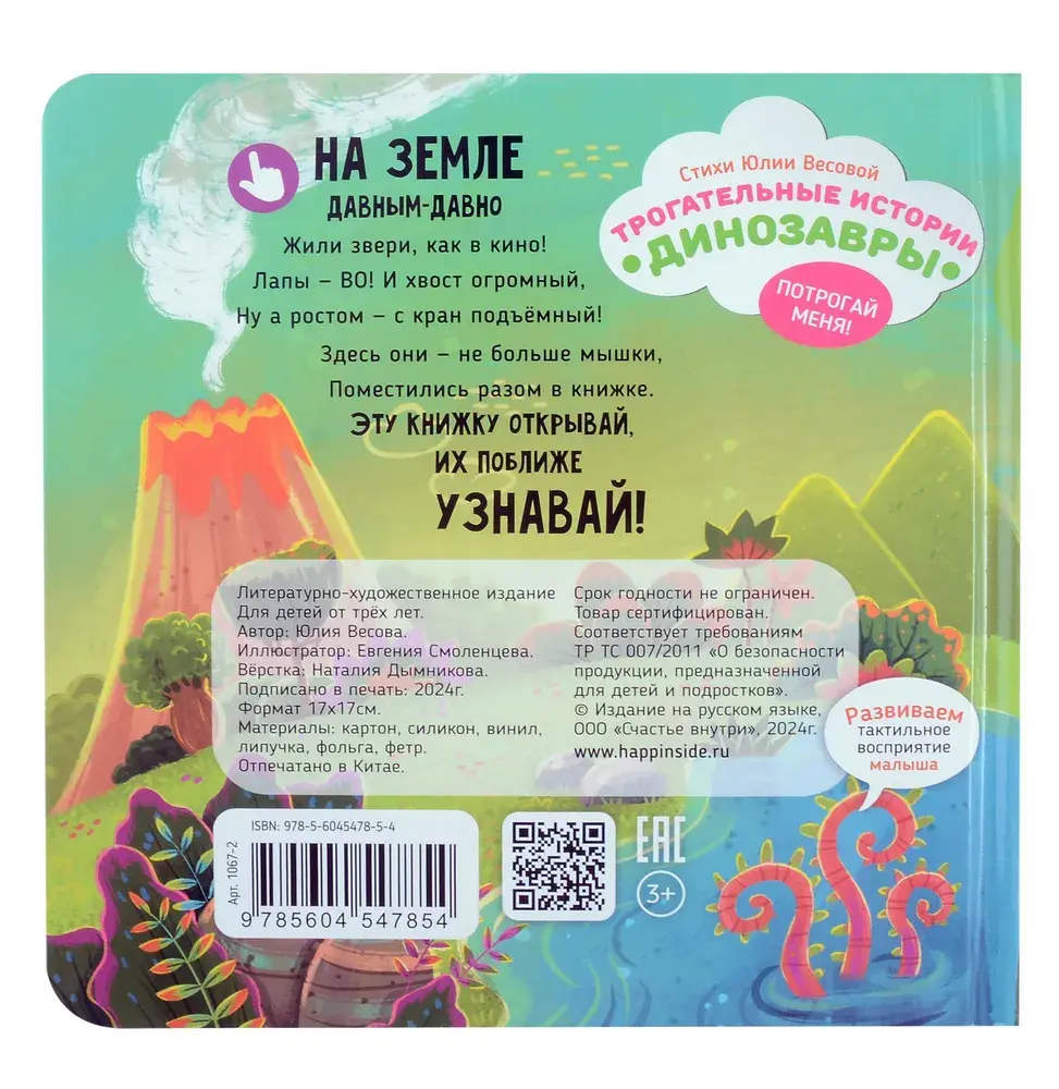 Трогательные истории в забавных стихах об обитателях сафари и леса, о домашних питомцах и транспорте. Открыть для себя Водный мир и мир Динозавров, для самых маленьких от Юлии Весовой – серия инновационных тактильных книг для детей и малышей от 0 лет, которые не только расскажут об интересных животных и транспорте для людей но и дадут прикоснуться к персонажам книг. Какая грива у льва? Какая кожа у слона? Какой хвостик у лисички или у зайки? Какие бока у хомяка? Какие колеса у машины? Потрогай и узнаешь! Развивающие книжки-игрушки для детей с тактильными вставками из силикона и меха станут прекрасным оригинальным подарком для малыша на праздник день рождения, ведь они развивают воображение,