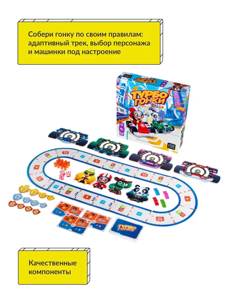 "Турбо гонки" легко освоить, что делает её доступной для детей от 6 лет и старше. Игра отлично подходит как для дружеских встреч, так и для семейных вечеров. Она станет отличной возможностью для взрослой компании вспомнить детские игры, при этом вовлекая в игровой процесс новое поколение.
