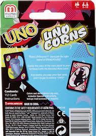 Now you can play UNO and at the same time look at magical, colorful unicorns! The goal is to get rid of all the cards in your hand, and the first player or team to 500 points wins Special action cards like Skips and Reverses change gameplay at any moment When you're down to one card, don't forget to yell "UNO"! Game includes 112 cards plus instructions. for 2 to 10 players, ages 7 and older
