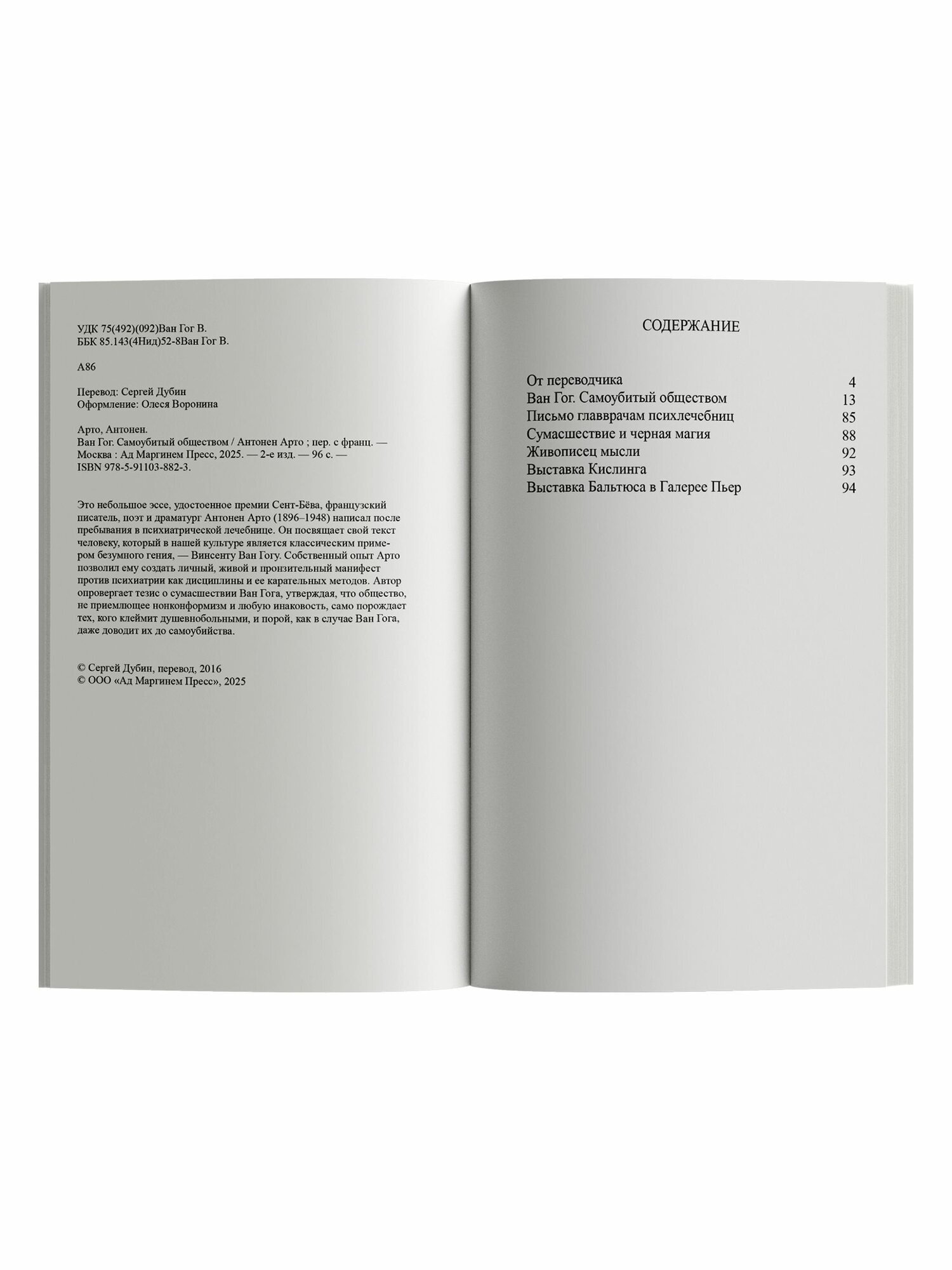 Это небольшое эссе, удостоенное премии Сент-Бёва, французский писатель, поэт и драматург Антонен Арто (1896–1948) написал после пребывания в психиатрической лечебнице. Он посвящает свой текст человеку, который в нашей культуре является классическим примером безумного гения, — Винсенту Ван Гогу. Собственный опыт Арто позволил ему создать личный, живой и пронзительный манифест против психиатрии как дисциплины и ее карательных методов. Автор опровергает тезис о сумасшествии Ван Гога, утверждая, что общество, не приемлющее нонконформизм и любую инаковость, само порождает тех, кого клеймит душевнобольными, и порой, как в случае Ван Гога, даже доводит их до самоубийства.