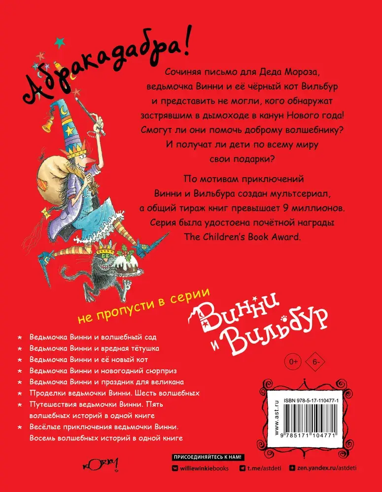 Редакция "Вилли Винки" представляет! Когда ведьмочка Винни и её чёрный кот Вильбур сочиняли письмо для Деда Мороза, они и представить себе не могли, кого обнаружат застрявшим в дымоходе в канун Нового года! Смогут ли Винни и Вильбур помочь доброму волшебнику? И получат ли дети свои подарки вовремя? Неужели Новый год под угрозой? Во всём мире дети и взрослые с удовольствием наблюдают за забавными приключениями незадачливой ведьмочки Винни и кота Вильбура. Иллюстрации Корки Пола сделали персонажей запоминающимися и знаковыми. Общий тираж книг превышает уже более 7 миллионов. Серия была удостоена почётной награды The Children's Book Award."Ведьмочка Винни встречает Новый год! Пять волшебных историй в одной книге" включает в себя:• "Винни пишет письмо Деду Морозу";• "Винни превращает зиму в лето";• "Винни участвует в шоу";• "Винни снова летает на метле";• "Винни выслеживает монстра". Для детей до 3-х лет.