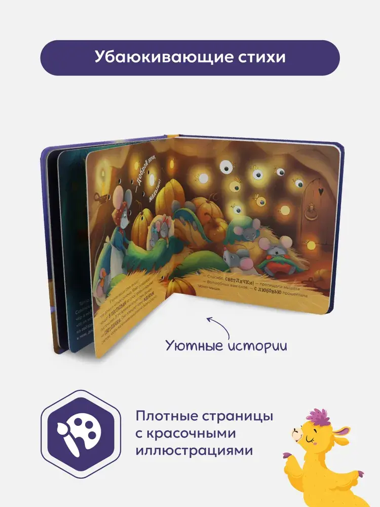 «Волшебные огоньки» — новая серия от торговой марки Malamalama! Самая уютная книга на свете —Самая уютная книга на свете — «Ёлочка друзей» — отправляет ребёнка в путешествие по зимнему лесу. Как зверята готовятся к Новому году? С какими чудесами они столкнутся? Милые иллюстрации, добрые персонажи и самые настоящие огоньки на страницах ждут ребёнка в книге. Фонарики на ёлке, свечи в комнате, светлячки или снежинки — внутри каждой страницы располагаются светодиоды, которые выглядывают в крошечные отверстия, заставляя их на самом деле светиться. Отройте для себя настоящее волшебство вместе с Malamalama!