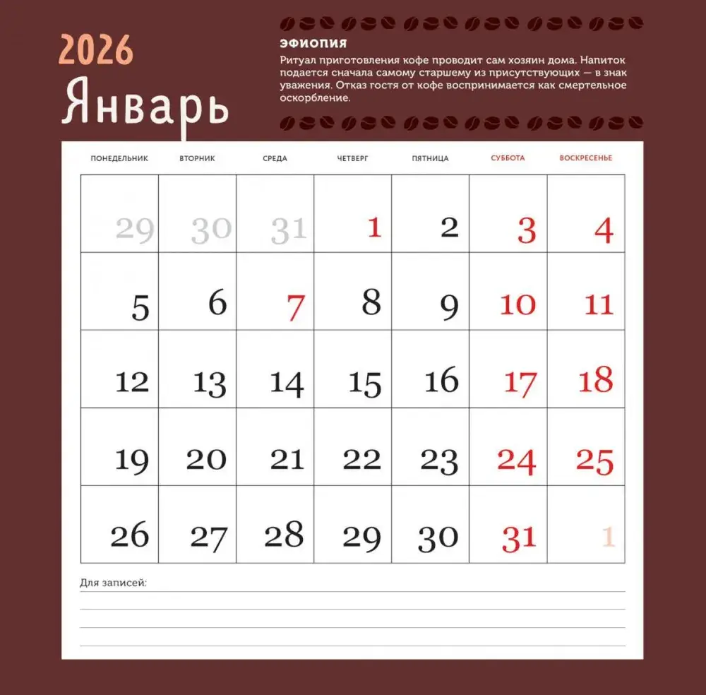 Планируйте дела с чашечкой кофе, не забывая о праздничных и выходных днях, которые отмечены в календаре!
