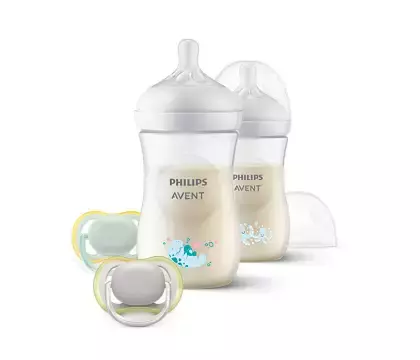 Philips Avent yeni doğulmuşdan körpəyə qədər uşaqlar üçün məhsullar yaradan tanınmış brenddir. Bu, dünya üzrə analar tərəfindən tövsiyə edilən 1 nömrəli brenddir və artıq əfsanələrin məhsuludur. Yəqin ki, bir çox insanlar Philips Avent döş pompası və ya butulka sterilizatoru olmadan valideynlik fəaliyyətini hər gün təsəvvür edə bilməzlər. Bu məhsullar zamanla sınaqdan keçirilir və dünyanın bir çox valideyni tərəfindən sınaqdan keçirilir, buna görə də onların populyarlığının ağızdan-ağıza eşitilməsi əbəs yerə deyil. Bu, məhsulun keyfiyyətinə xüsusi diqqət yetirən Britaniya tərəfindən yaradılmış bir markadır. Philips Avent qida şüşələri, döş pompaları, körpə monitorları və termometrləri, şüşə qızdırıcıları və sterilizatorları və qida ilə bağlı digər aksessuarlar (məmə qalxanları, əmziklər, əmziklər) ilə məşhurdur. Philips Avent heç kəsi laqeyd qoymayacaq - məhz bu məhsulları sınadıqdan sonra valideynlər dərhal bu brendə aşiq olur və məhsulun keyfiyyətinə heyran qalırlar. Müasir və innovativ Philips Avent məhsullarını alın və valideynlikdən həzz alın. Əmzik yalnız körpə aktiv şəkildə içdiyi zaman süd buraxır. Körpələr, məsələn, döşdə yatarkən normal sürətlə içə, udub və nəfəs ala bilərlər. Bu səbəbdən ana südü ilə butulka ilə qidalanmanın birləşdirilməsi əlverişlidir.Yenidoğan üçün başlanğıc dəsti\ Natural Response Newborn Starter Set