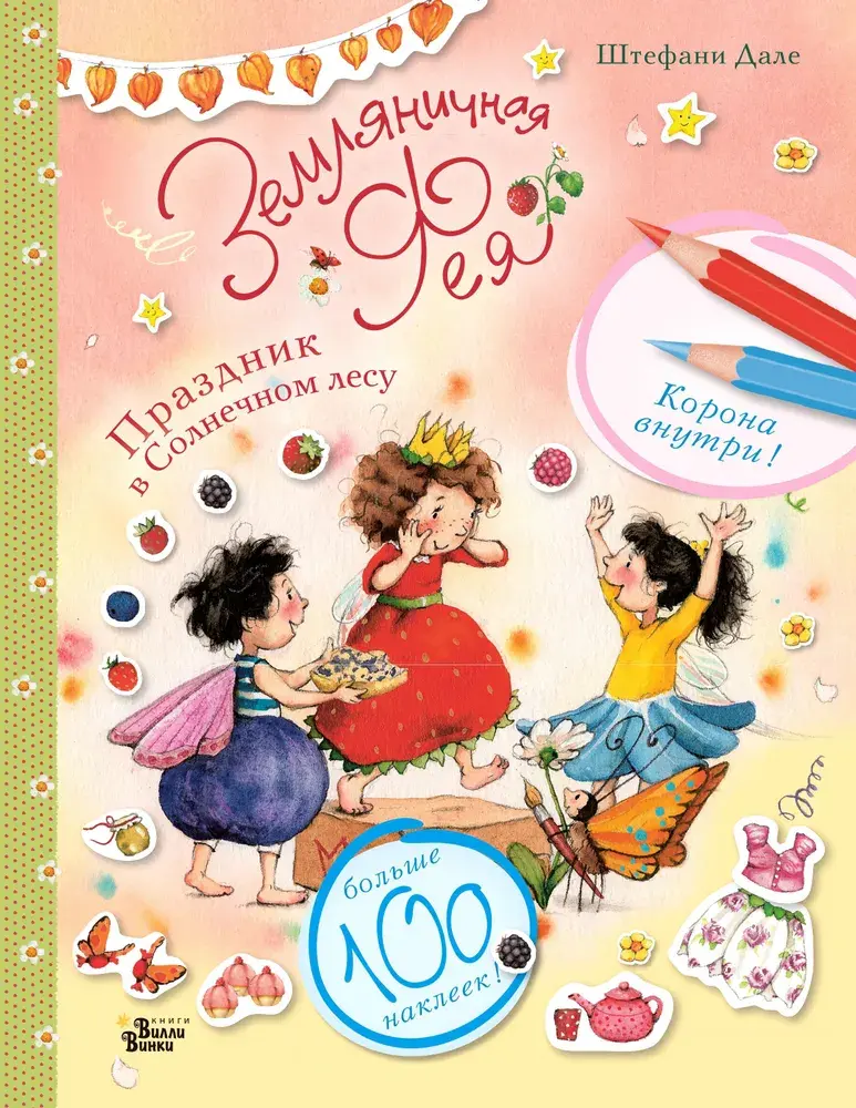 Раскраски и наклейки с популярным персонажем из серии книг о Земляничной фее увлекут ребенка. Бонус! В каждой из 4 книг вы найдете уникальный постер. На обратной стороне обложки «Земляничная фея. Праздник в Солнечном лесу» бумажная корона. Украсьте ее наклейками с клубникой, вырежьте – и украшение готово. А еще внутри список дел для подготовки к празднику и рецепт ягодного пирога.