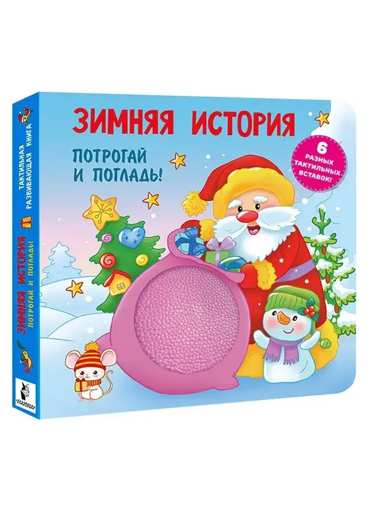 Книга «Зимняя история» — лучший новогодний подарок для любознательных малышей. В книге 7 тактильных вставок, которые расположены на ярких страницах из гладкого мелованного картона. Мех, фольга, силикон, плюш, кожа, вязаная ткань, пайетки — стимулируют мелкую моторику, массируют детские пальчики и ладошки, учат малыша различать разные текстуры и способствуют развитию речи, памяти, воображения, пространственного мышления. С такой развивающей книжкой-игрушкой маленькие уроки всегда будут простыми, увлекательными и разнообразными. Какая борода у Деда Мороза? Чем украшено платье Снегурочки? Потрогай — и узнаешь!