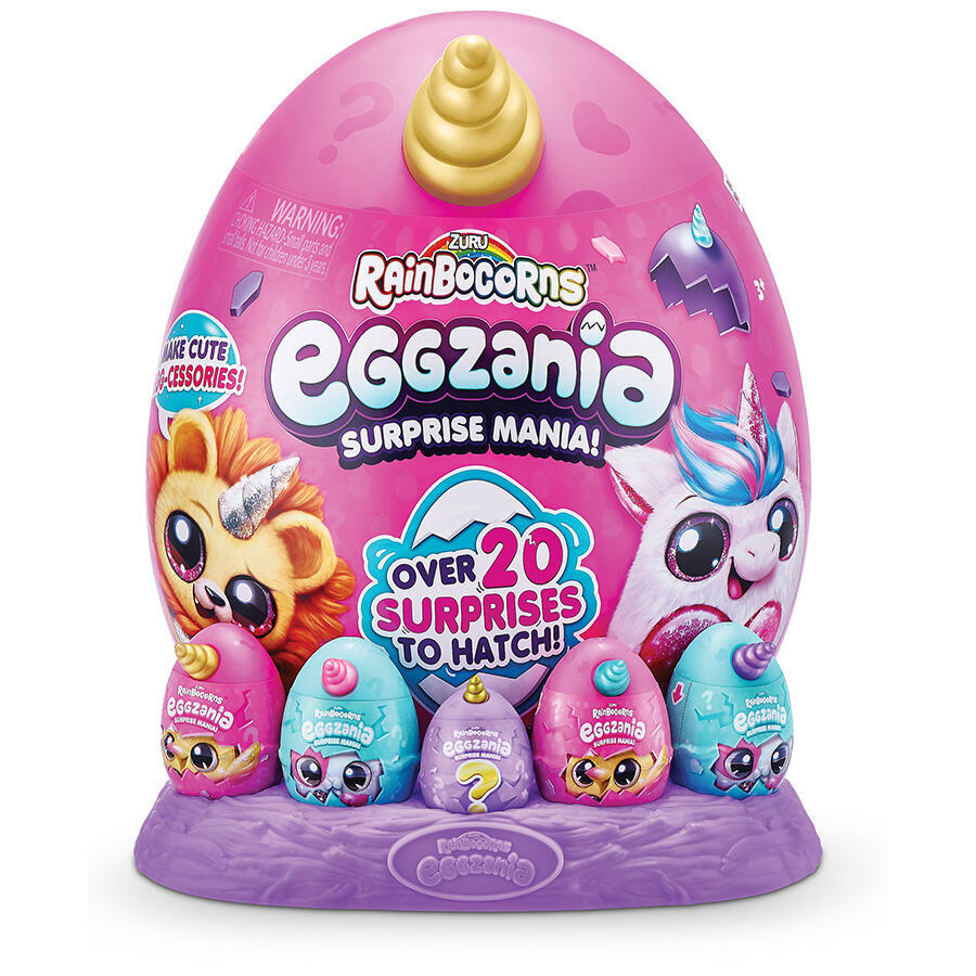 ZURU Rainbocorns Eggzania Surprise Egg — uşaqlar üçün rəngarəng və əyləncəli sürpriz yumurtadır. Hər yumurtanın içində unikal Eggzania Rainbocorn plyuş oyuncağı, tematik aksesuarlar, kolleksiya kartları və kiçik sürprizlər gizlənib. Uşaqlar yumurtanı açaraq içindəkiləri kəşf edir və müxtəlif Rainbocorn qəhrəmanlarını toplaya bilir. Bu yumşaq və parlaq fiqurlar uşaqlarda təxəyyülü və yaradıcılığı inkişaf etdirir.